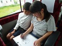 バスレク。班ごとに考えたクイズや出し物で、みんなで盛り上がりました。