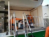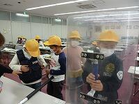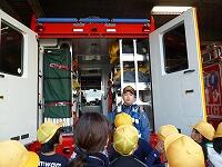 お昼を運動公園で食べ、午後は、栃木市消防署を見学しました。話を聞いた後、通信指令センターを見学しました。短時間で火事の現場が分かり、消防自動車を出動させるしくみが理解できました。その後、様々な種類の消防自動車を見せてもらいました。起震車やはしご車に乗る体験もしました。百聞は一見にしかず、教室ではできない有意義な学習となりました。