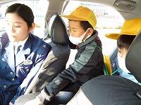 警察署では、始めに警察署についてのDVDを見てから署員の方のお話を聞きました。その後、警察署員の方が使っている道具を実際に使わせてもらいました。手錠や警棒、盾にはみんな興味津々でした。最後にパトカーに乗車させてもらいました。中にあるいろいろな装置に目を奪われていました。