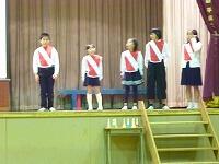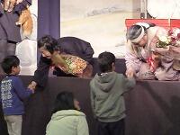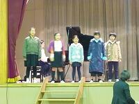 上演終了後、児童代表によるお礼の言葉や花束贈呈を行いました。そして全員で元気に「ありがとうございました!」と言い、お礼の気持ちを伝え、楽しいひとときは幕を閉じました。