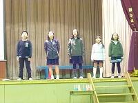 1年と5年の代表児童2名による作文発表もありました。計算や漢字を頑張ったこと、運動面での技能が高まったこと、友達のよいところをまねしてがんばったらできるようになったこと、最上級生への心の準備をしていくことなど、頼もしい作文でした。