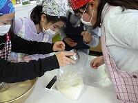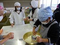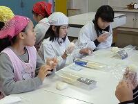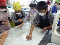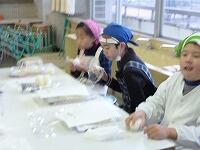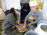 12月7日(水)に茅島さんが、5年生が稲刈り体験をした稲を精米して学校に届けてくださいました。さっそく炊飯器で炊いて、塩むすび作りに挑戦しました。