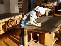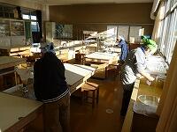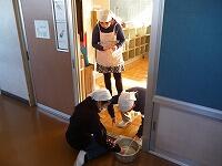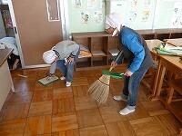 ひごを使って細い隙間のゴミ取りをする子、テーブルの上の絵の具の拭き残しを見つけ何回もこすって、きれいなテーブル面に仕上げる子、一つ一つの棚に積もった埃をほうきで掻き出す子、敷居の汚れを割り箸や歯ブラシを使って、丹念にこそぎ落とす子など、一人一人が自分の担当場所を自主的に考え、よく活動していました。