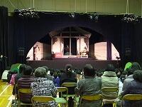 演目は「キツネとタヌキにだまされた」と「おこんじょうるり」の2つ。笑いあり、涙ありの心ゆさぶられる上演でした。「らくりん座さんの劇を見たい。」と言う地域の方々や保護者の方の参観もあり、総勢165名が生の演技を楽しみました。