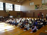 その後、冬休みについて児童指導の先生から話がありました。夏休みと同じく「三つの輪」についてです。交通安全「タイヤの輪」、無駄遣いに注意!「お金の輪」、そして年末年始は「人の輪」、家族や親戚と温かいひとときを、という冬休みバージョンの話でした。
