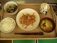 作った料理は給食で人気の韓国料理で、ビビンバ、野菜のナムル、チンゲン菜と卵のスープ、フルーツヨーグルトの4品です。