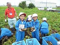 歩いてじゃがいも畑に行きました。掘れば掘るほど、ごろごろとじゃがいもが出てきて、みんなうれしそうでした。一人2個ずつ、じゃがいもをお土産にもらいました。収穫したじゃがいもは、7月5日の給食の肉じゃがとして調理されるとのこと。子どもたちは、今から待ち遠しいようです。お世話になった皆様、大変ありがとうございました。
