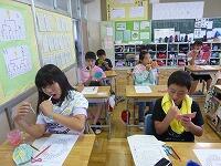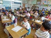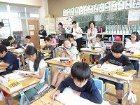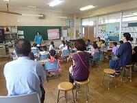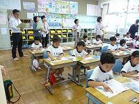 まず、業間活動の時間に行った、「音楽集会」の様子を見ていただきました。次に、各クラスの授業(3時間目)の様子を見ていただきました。