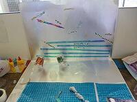 大きな厚紙の上に、協力して作り上げた作品が所狭しと飾られました。