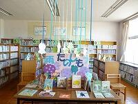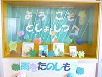 廊下や図書室の中には、6月らしい梅雨の季節をイメージした様子がディスプレイされています。