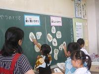 まず、1年生から6年生までの全学年で、学級活動の時間に、歯と口の健康について学びました。