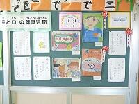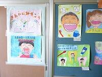 昇降口横の廊下には、「歯と口の健康週間」の作文・標語・ポスターの作品が掲示されています。入賞者の皆さん、おめでとうございます。