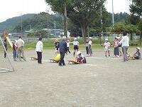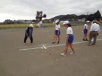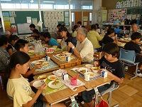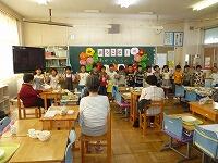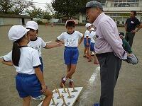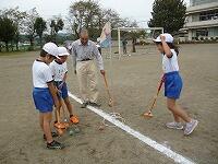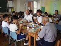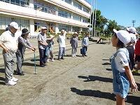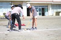 本校では、毎年秋に、地域のお年寄りの方々と輪投げやグランドゴルフを楽しんだり給食を食べたりして、交流を深めています。