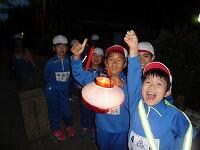 夕飯を食べた後はナイトハイキングに行きました。暗い夜道をちょうちんの明かりを頼りに、友達と寄り添い合いながらあじさい坂を登りました。ゴールの太平山神社の展望台では、すばらしい夜景に感動した余韻を残したまま1日目の活動を終えました。