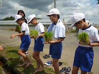 手で植える大変さ、協力することの大切さを実感した5年生でした。