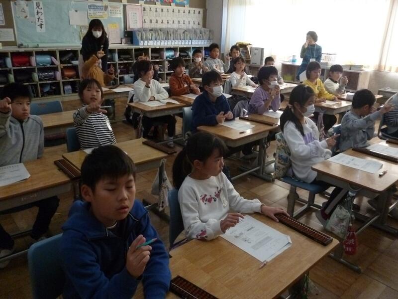 初めてそろばんにさわる児童がほとんどで、真剣に授業に取り組んでいました。
