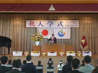 実は、みなさんの入学を祝って、お客さんを呼んでいます。ご挨拶してもらいましょう。新入生のみなさん、おめでとうございます。ぼくは、うさぎの白きちと言います。白きちはね、赤津小のうさぎ小屋にいるうさぎの中でも一番おじいちゃんのうさぎです。白きちはね、毎日、赤津小の子供たちをうさぎ小屋から見守ってくれています。白きち、赤津小の子供たちの良いところを教えて。いいよ。赤津小の子供たちは、みんななかよしなんだ。男の子も女の子もみんな仲良し。上級生のお兄さん、お姉さんもみんなやさしいよ。すぐにみんな仲よくなっちゃうんだ。それからね。みんな、あいさつもとってもよくできるんだ。おはよう。さようなら。ありがとう。ごめんなさい。あいさつが世界で一番できる赤津小のみんなだよ。