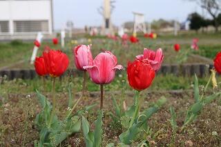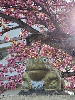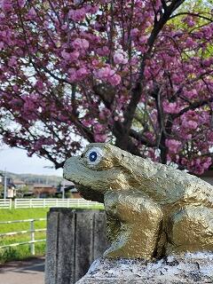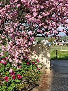 学校西門の八重桜とぼたんの花が見頃となってきました。ミニ金太君との組合せもばっちりです。天候も安定しない日が続きますが、みなさまご自愛の程を。