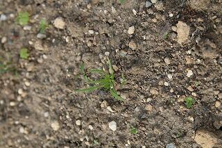 保健室前花壇に植えたニンジン、2cm程、芽をだしました