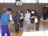 。1年生は「昔遊び」で、竹馬名人やお手玉名人、おはじきに羽子板、けん玉、こま回しなど、地域の昔遊びの名人に教えていただきました