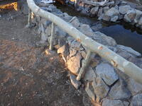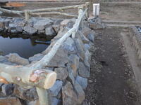 スクールバスの運転手さんがボランティアとして、自然木を生かしてビオトープに、素敵な囲い柵を作ってくださいました