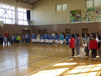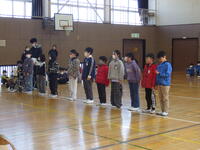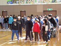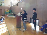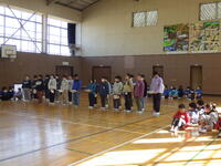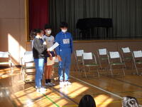 。1年生から5年生までが体育館に集まり、各6年生への出し物や歌の練習をしました
