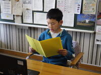朝の活動の時間に図書委員会が各教室に行き、多読賞の表彰をしました
