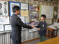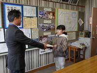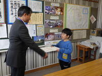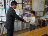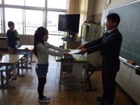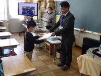 その後、各教室で修了証を代表児童に手渡し、各学年の課程を修了したことをクラスでお祝いしました