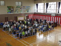 。今日は離任式があり、1年生から5年生、そして卒業生が久しぶりに体育館に集まりました