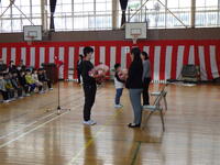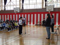 離任式では、お別れする先生の紹介や児童代表の言葉、花束の贈呈がありました