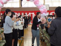 卒業式後には、在校生が花のアーチを作り、卒業生と保護者が一緒にアーチをくぐりながら、卒業生の旅立ちをお祝いしました