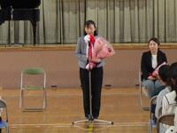 。作文発表を行った2名の児童からは算数や縄跳びを頑張ったこと、自主学習を頑張ったこと、クラスで話し合い、助け合いながら、お互いが成長できたことなどの話があり、1年間の成長を振り返ることができました