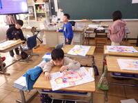 お知らせ1年生がボランティアの先生にお手伝いいただきながら、スポンジや野菜などに絵の具をつけて、カラー版画を楽しみましたキラキラ。魚やクラゲ、カメレオンにカタツムリなど色鮮やかな生き物を版画で表現しました美術・図工。担任の先生や支援員の先生、ボランティアの先生とたくさんの支援をいただきながら、素敵な作品に仕上げていました笑う。お手伝いいただいたボランティアの先生、ありがとうございましたお辞儀