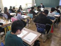 6年生は会場となる体育館で、1~5年生は各教室で、礼法指導(立ち方や座り方、礼の仕方など)や歌、「別れの言葉」(呼びかけ)の練習を行っています。