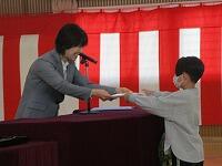 表彰の後、本年度の修了式が、体育館で行われました。修了式では、学年代表の児童が修了証(「学びのすがた」)を受け取りました。また、代表児童による作文の発表は、内容も発表の仕方も素晴らしかったです。どの学年の子供たちも、立派な態度で真剣に臨めました。校歌も大きな声で歌えました。その後、春休みの過ごし方についての話を聞きました。