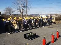 二つ目は消火訓練です。ヘルメット、放火服に身を包み、消火器を使った初期消火活動を体験しました。