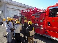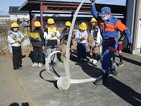 また、ホースを投げる実演も見ることができ、子供たちは20mのホースの長さに驚いていました。