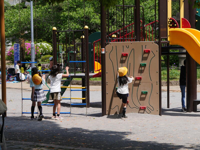 お昼は、第二公園に歩いて行き、青空の下で、おいしいお弁当をいただきました。
