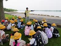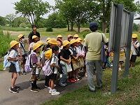 渡良瀬遊水地では、洪水から町を守るために渡良瀬遊水地が作られたことや、現在の遊水地の公共施設としての役割(①治水 ②利水 ③自然環境 ④利用)について丁寧に説明していただきました。
