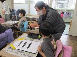 初めて半紙に字を書きましたが、ボランティアさんにご支援いただいたお陰で、どの子も丁寧に自信をもって書くことができました。