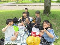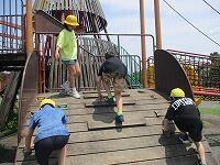 昼食後は公園の遊具を使って遊びました。学校と違う遊具に笑顔あふれる様子が見られました。