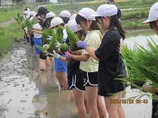 子供たちは土の感触を感じながら、楽しく田植えをすることができました。