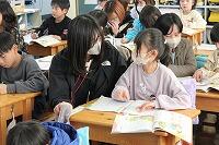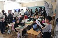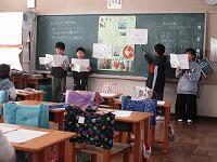教室では、子供たちが、よく発表を聞き、楽しそうにクイズに答えていました。