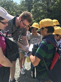 海外からいらした方にインタビューしています。練習した英語は上手にしゃべれたかな?