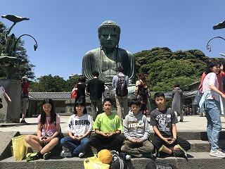 大仏の前で、大仏と同じポーズで写真を撮りました。
