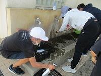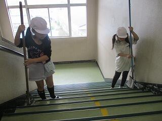 校舎内では、窓拭きや電灯ふき、トイレ掃除など、普段できない作業をしていただきました。