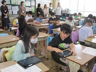 2年生以上は、タブレットの扱いも慣れているので、高学年になるほど各自で手早く操作し回答しています。
