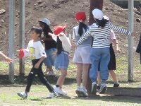 次に、縦割り班で鬼ごっこやドッジボールなどをして遊びました。1年生も上級生たちと楽しそうに活動する姿が見られました。みんなとても楽しそうでした。見守ってくださっているボランティアさんたちが、先生方も一緒になって楽しそうに遊んでいることや子供たちの元気な姿が素晴らしいとのお言葉をいただきました。