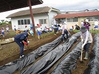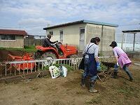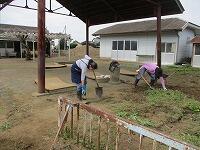 また、校庭のグランドの凸凹で、子供たちが転ばないように平らにするため、西風で運ばれた砂を運んでならす作業をしていただきました。力仕事、大変ありがとうございました。
