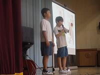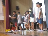 代表児童の作文発表では、1年生と5年生の代表が、夏休みの思い出や2学期に頑張りたいことなどを、堂々と発表し立派でした。